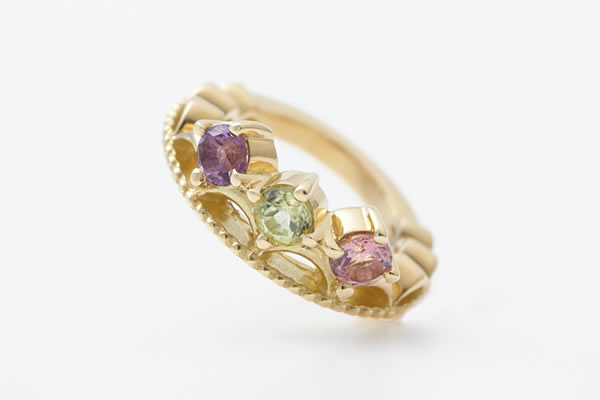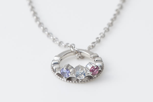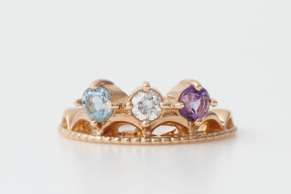 ママ・赤ちゃん・パパの3つの誕生石がセットされます。