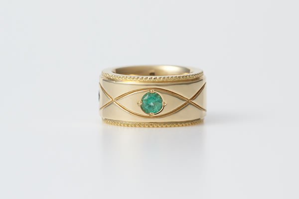 北欧神話最強の神トールが・赤ちゃんの守り神になってくれるベビーリング。指輪の中央には永遠を表すメビウスの輪が連なり・上下の細かいミル打ちは豊穣を願う証と・ラッキーモチーフが満載されています。