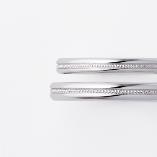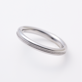 中央のミル打ちが印象的なデザインです。ふたりをつなぐ糸がしっかりと結ばれています。50代の結婚指輪買い替えにお勧めです。