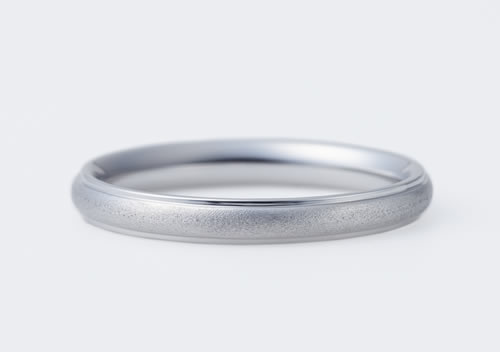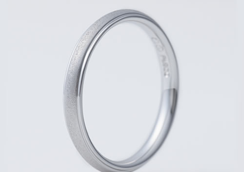 上下の細いラインに、真ん中は職人の手仕事である美しいつや消し模様。 静かな雰囲気で男性にも着けやすい結婚指輪です。