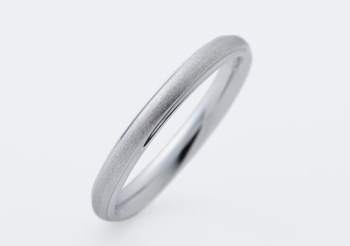 落ち着いたつや消しの上下にある細いラインがキラキラ美しく輝く北欧スタイル結婚指輪。「内甲丸」の優しい着け心地が男性にも人気です。