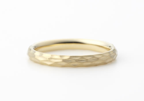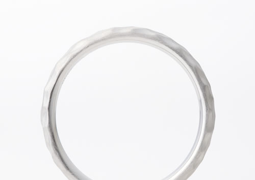 指輪の表側にはちいさな面がたくさんありますが、内側は肌に吸いつくようになめらかな感触のナチュラルフィットです。