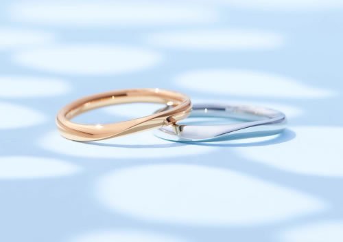 ニュアンスのある曲線が美しく、眺めていて飽きることがありません。画家というネーミングも、おしゃれな二人に人気の北欧スタイル。ピンクゴールドの結婚指輪も人気です。