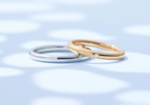 プレーンでシンプルなデザインなのに、美しいフォルムの結婚指輪。初めて指輪を着けるお二人のくすり指にこそ似合う指輪です。