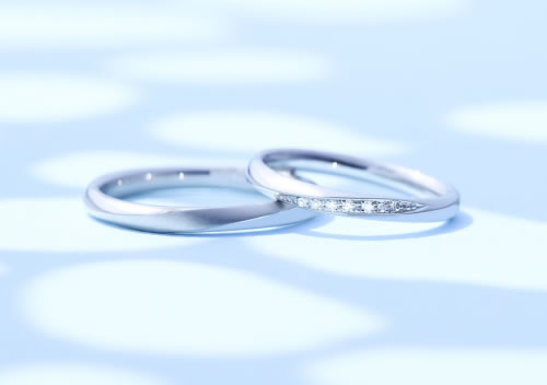 スーツの男性でも着けやすいように、ストレートのフォルムに控え目な意匠のデザイン、見る角度によって表情が美しく変化します。北欧のナチュラルな暮らしをお手本に歩むカップルのための結婚指輪(マリッジリング)です。