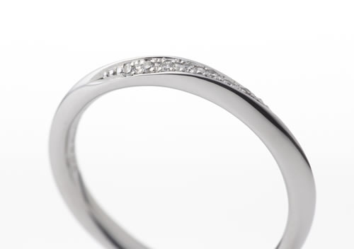 細身のフォルムが美しく、ダイヤモンドと共に指に映える北欧スタイル結婚指輪。静かで落ち着いた雰囲気は品の良いあなたにとても似合います。