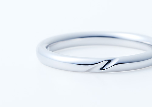 Tak(タック)を真横から眺めると、全体にほど良い厚みがあることが よくわかります。 このように内側が丸く磨かれた内甲丸の結婚指輪は、丈夫でつけ心地も快適なので 長く親しむことが出来るのです。