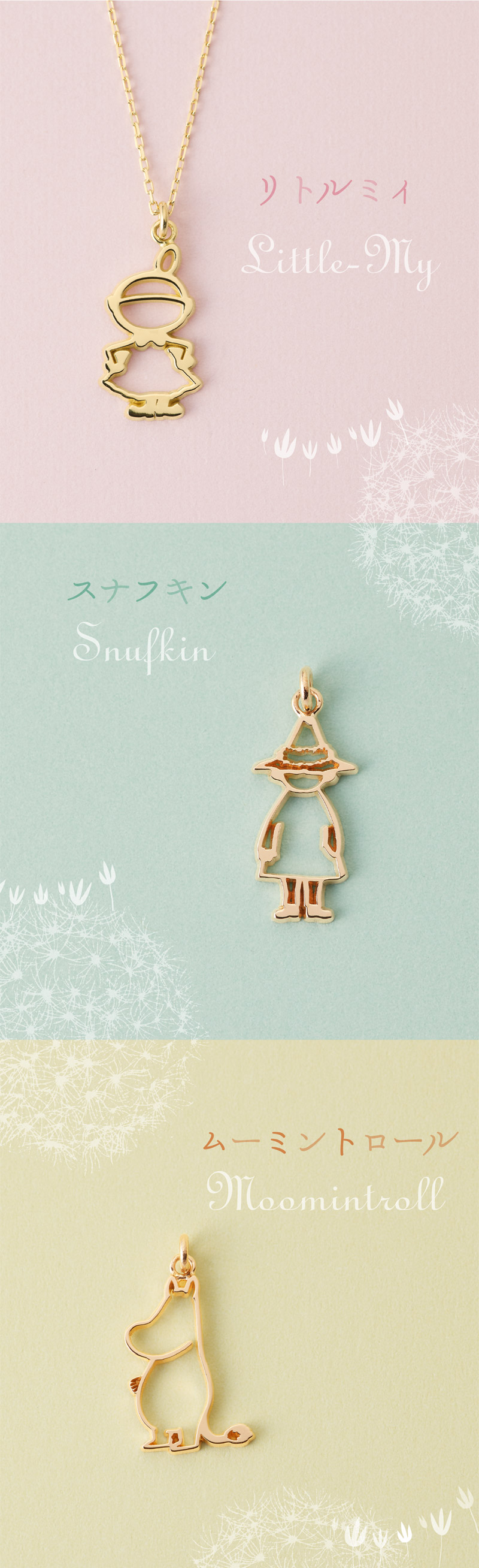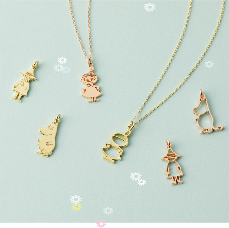 小さくても細かく描かれている、上質なジュエリーです。ピンクゴールドのリトルミイも素敵ですね。