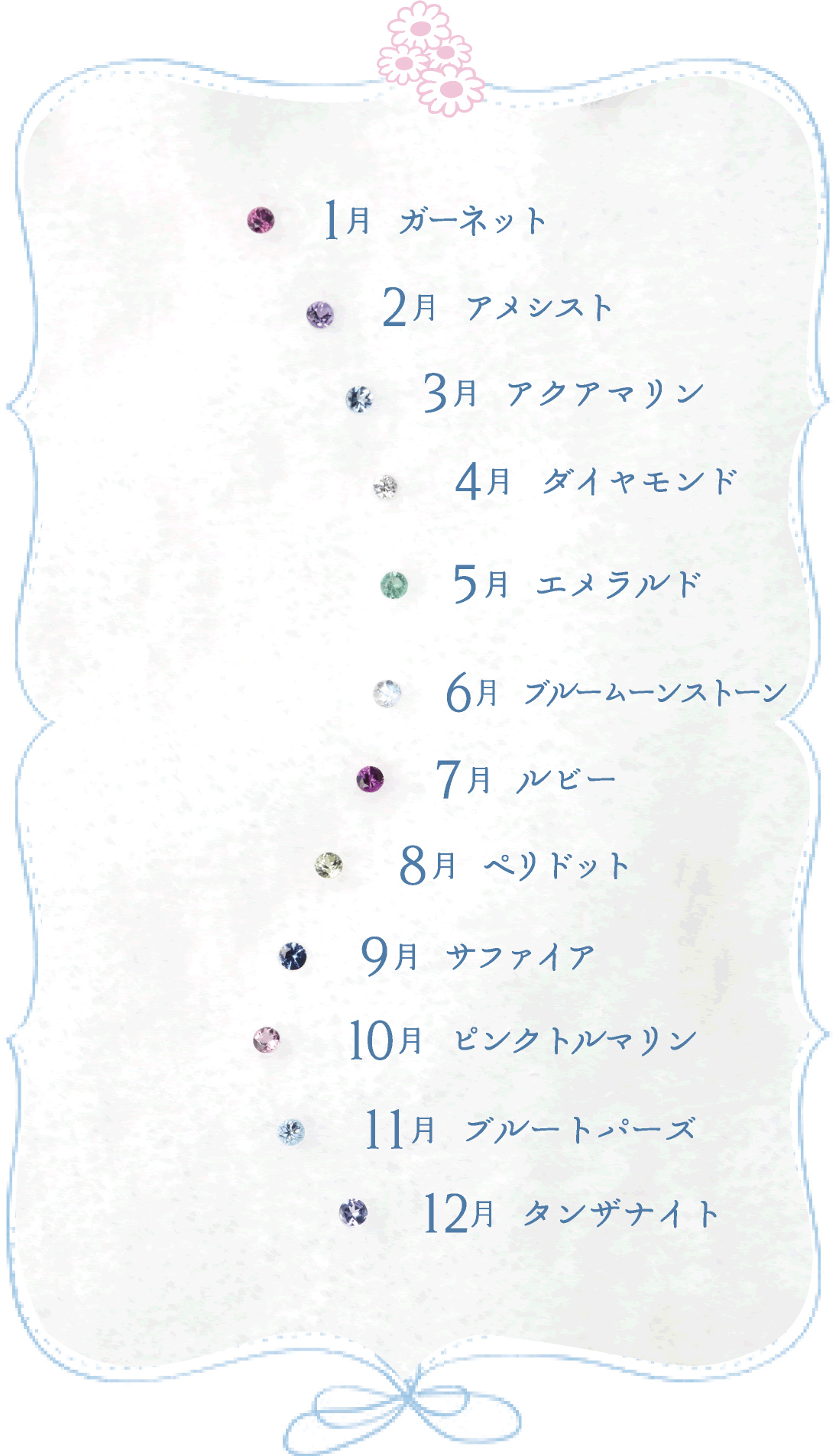 打刻され、12か月の誕生石が幸せのパワーを高めてくれます。