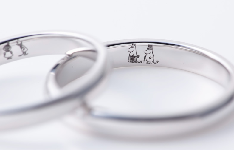 あなたのお気に入りのムーミンキャラクターがそのまま結婚指輪の内側に。