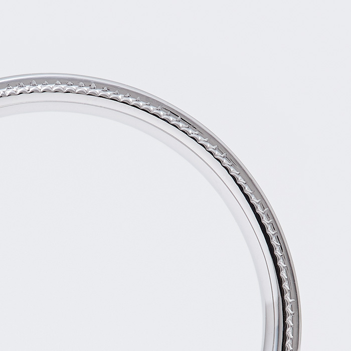 Meri(メリ)の上下には、ミルグレイン(ミル打ち)という小さな粒が。シンプルな指輪のさりげないアクセントになっています。